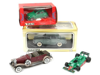 différentes grandes échelles - comprend : RENAULT DAUPHINE, CITROEN 2 CV, ALFA ROMEO 'BENETTON' & DUESENBERG 1930 - on y retrouve les marques : NOREV, POLISTIL & FRANKLIN MINT - boites en état 'b' (2 modèles sans)