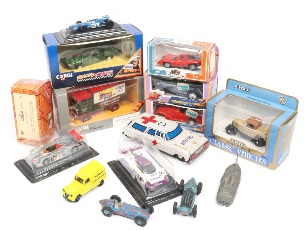 on y retrouve notamment les marques : DINKY TOYS, NOREV, CORGI TOYS & ERTL - les boîtes sont en états 'a' & 'b' (un blister décollé) - avec manques & parties cassées sur certains exemplaires (5 sans boîte)