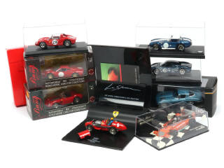 miniatures reproduisant les modèles : FERRARI, MARCH, SHELBY & CHEVROLET - on y retrouve les marques : MODEL BEST, IXO, MINICHAMPS, BANG, VITESSE & KYOSHO