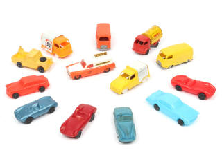 comprend notamment les modèles : ASTON MARTIN, RENAULT, PORSCHE, ALFA ROMEO, LAND ROVER & PEUGEOT - on y retrouve notamment les marques : SESAME, CLE, TOMTE, CRIO & CONVERT - quelques salissures & parties oxydées sur certains modèles (un modèle plus ou moins poisseux)