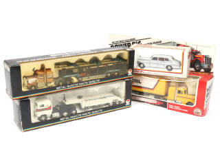 miniatures reproduisant les modèles : FREIGHTLINER (petits détails de peinture ajoutés sur le toit), KENWORTH & ROLLS ROYCE - on y retrouve les marques : SHINSEI & TOMICA DANDY - on y joint un camion de la marque ZEE TOYS en état 'A'-'c' (moteur à pile non testé) - les boîtes sont en états 'b' & 'c'