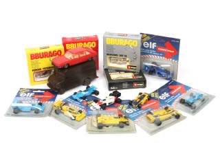 différentes échelles - on y retrouve notamment les marques : MAJORETTE, KOVAP & BBURAGO - les boîtes sont en états 'b' & 'c' (5 exemplaires sans boîte) - 4 exemplaires faisant office de porte-clés & un autre avec aileron manquant