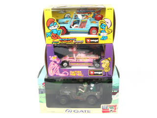 échelle 1/24ème - série spéciale avec les personnages de la PANTHER ROSE & des SCHTROUMPFS - quelques petits accrocs sur les boîtes - on y joint une JEEP 'BEETLE BAILEY' à l'échelle 1/8ème de la marque GATE