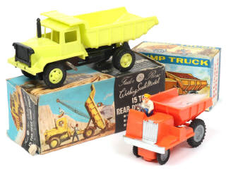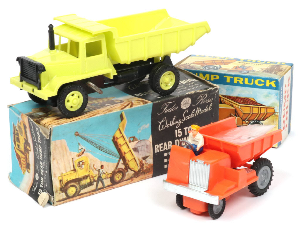 longueur du plus grand : 19 cm - réalisations en plastique - ensemble motorisé (fonctionne) - on y retrouve les marques : TUDOR ROSE (un pneu coupé) & MTM (avec sachet d'accessoire)