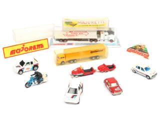 MAJORETTE (FRANCE) Ensemble de différents véhicules & 2 supports publicitaires