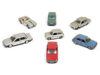 plus ou moins encrassé - comprend les modèles : AUTOBIANCHI, FIAT, FERRARI (détails ajoutés) & VOLVO - on y retrouve les marques : IDEA 3, MEBETOYS, POLISTIL, POLITOYS, MERCURY & BBURAGO