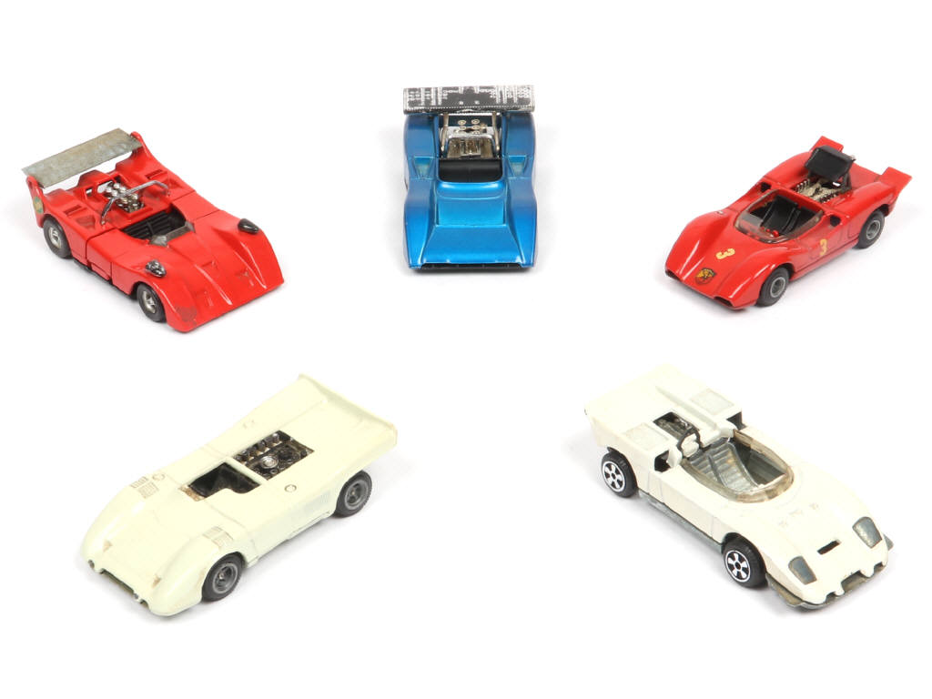 légèrement encrassé - comprend les modèles : LOLA, MARCH, PORSCHE (plancher dériveté), FORD & ABARTH (plancher dériveté) - quelques manques de pellicule chromée