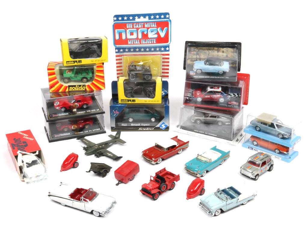 comprend notamment les modèles : CHEVROLET, ASTON MARTIN, FERRARI, RENAULT, BMW, JEEP & CITROEN - on y retrouve notamment les marques : FRANKLIN MINT, SOLIDO, SCHUCO, NOREV, JOUEF EVOLUTION & CORGI TOYS - quelques manques & parties cassées - certaines boites en état 'c'
