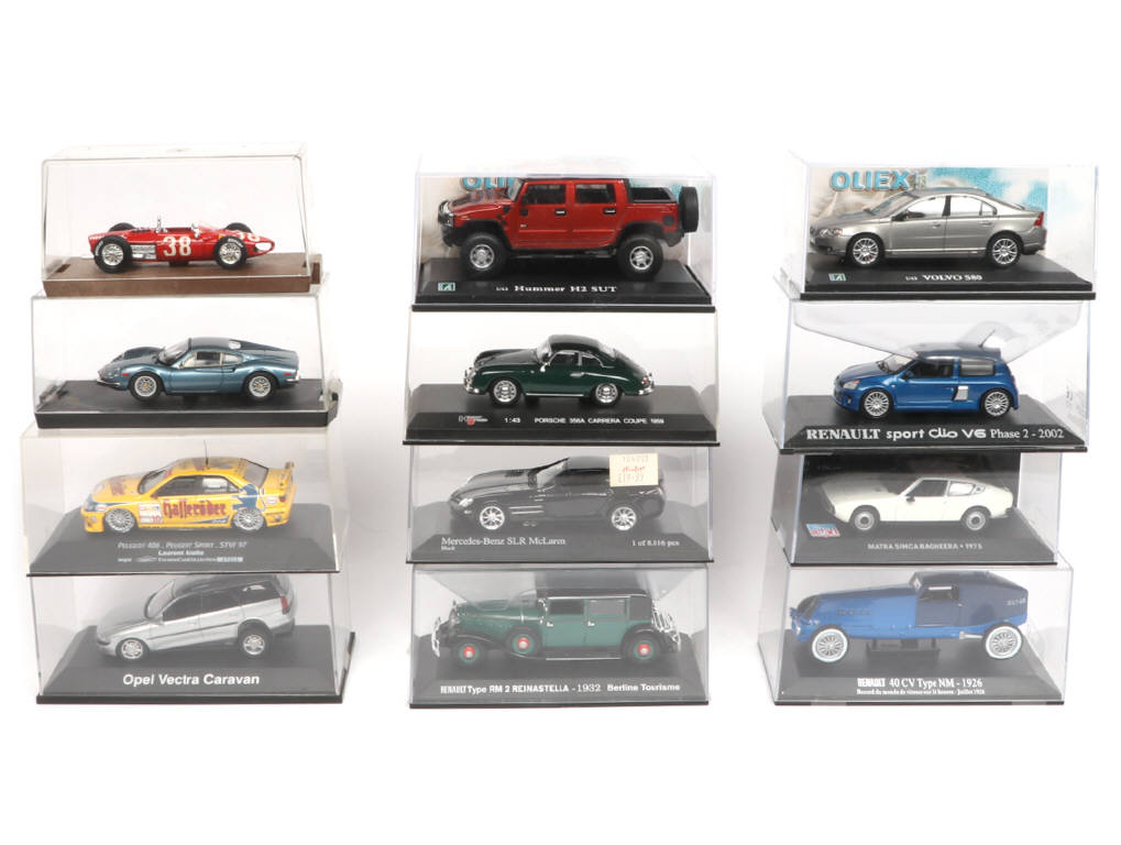 comprend notamment les marques : MINICHAMPS, BRUMM & SCHUCO - on y retrouve notamment les modèles : HUMMER H2 SUT, VOLVO S80, OPEL VECTRA CARAVAN & PORSCHE 356A CARRERA COUPE - boîtes en états 'b' à 'c'