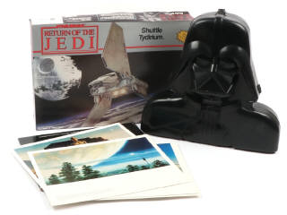 comprend : un portfolio contenant 20 dessins de l'artiste RALPH MCQUARRIE, un étui de rangement DARTH VADER (avec frottements) & une maquette SHUTTLE TYDIRIUM (sachets jamais ouverts) - on y retrouve les marques KENNER & MPC - boites avec accrocs, frottements & petites déchirures