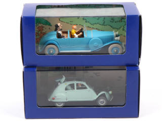 collection 'EN VOITURE TINTIN' - étiquettes sur certaines boites - quelques emballages en état 'c'