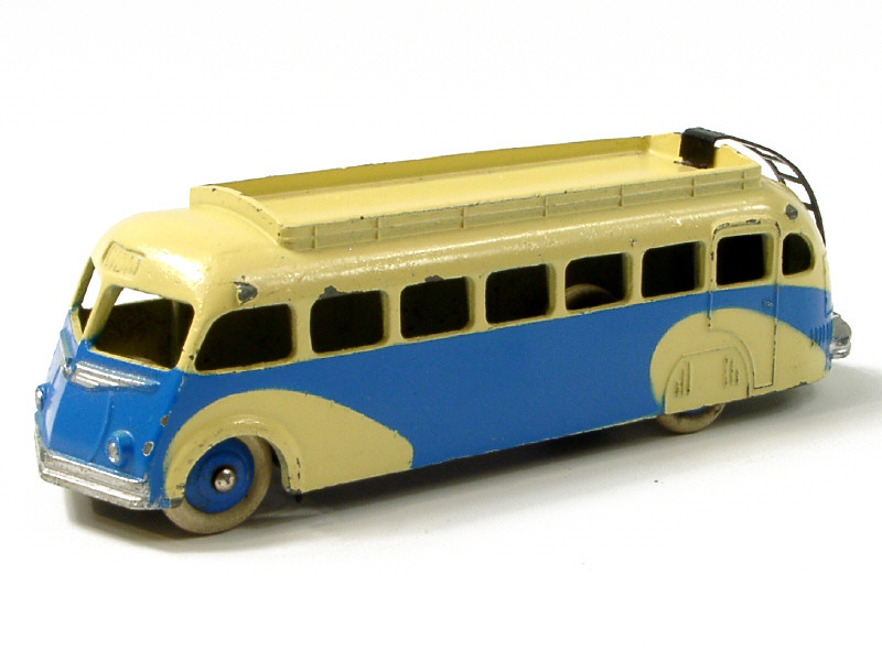 DINKY TOYS (FRANCE) 29E Autocar ISOBLOC (version avec galerie lisse & ailes au pochoir) bleu & crème