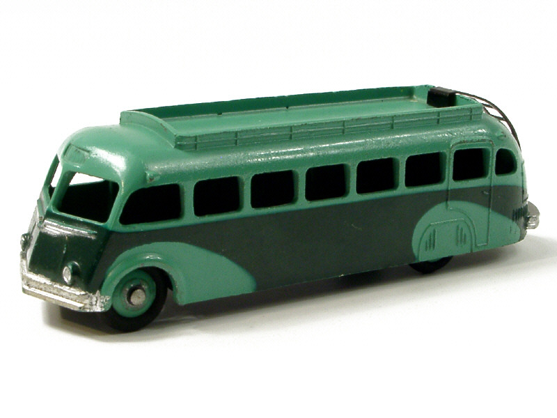 DINKY TOYS (FRANCE) 29E Autocar ISOBLOC (version avec galerie lisse & ailes au pochoir) 2 tons de vert