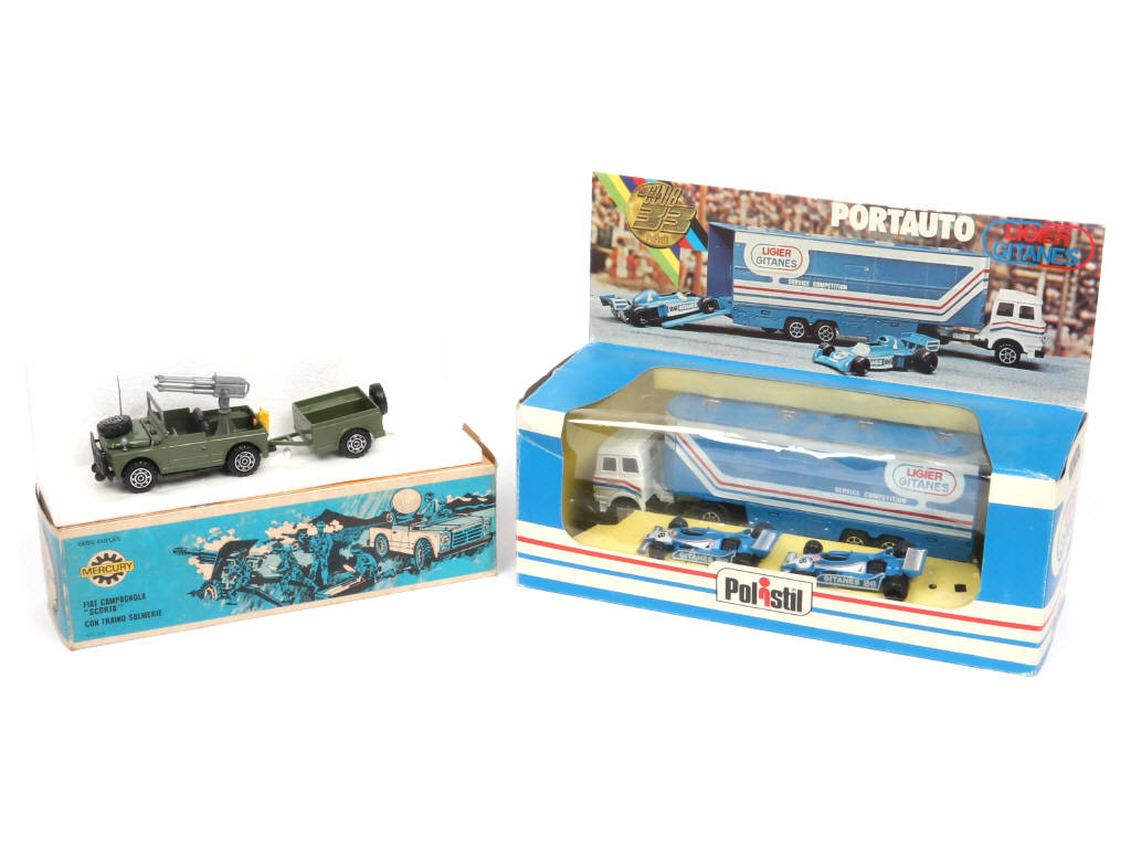 comprend les modèles : FIAT & LIGIER - on y retrouve les marques MERCURY & POLISTIL (manque élastiques de maintien) - boites en état 'b' avec quelques frottements