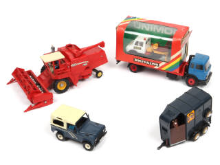 comprend les modèles : MERCEDES, FORD, MASSEY-FERGUSSON & LAND ROVER - quelques manques & parties cassées - un modèle en boite (état 'c')