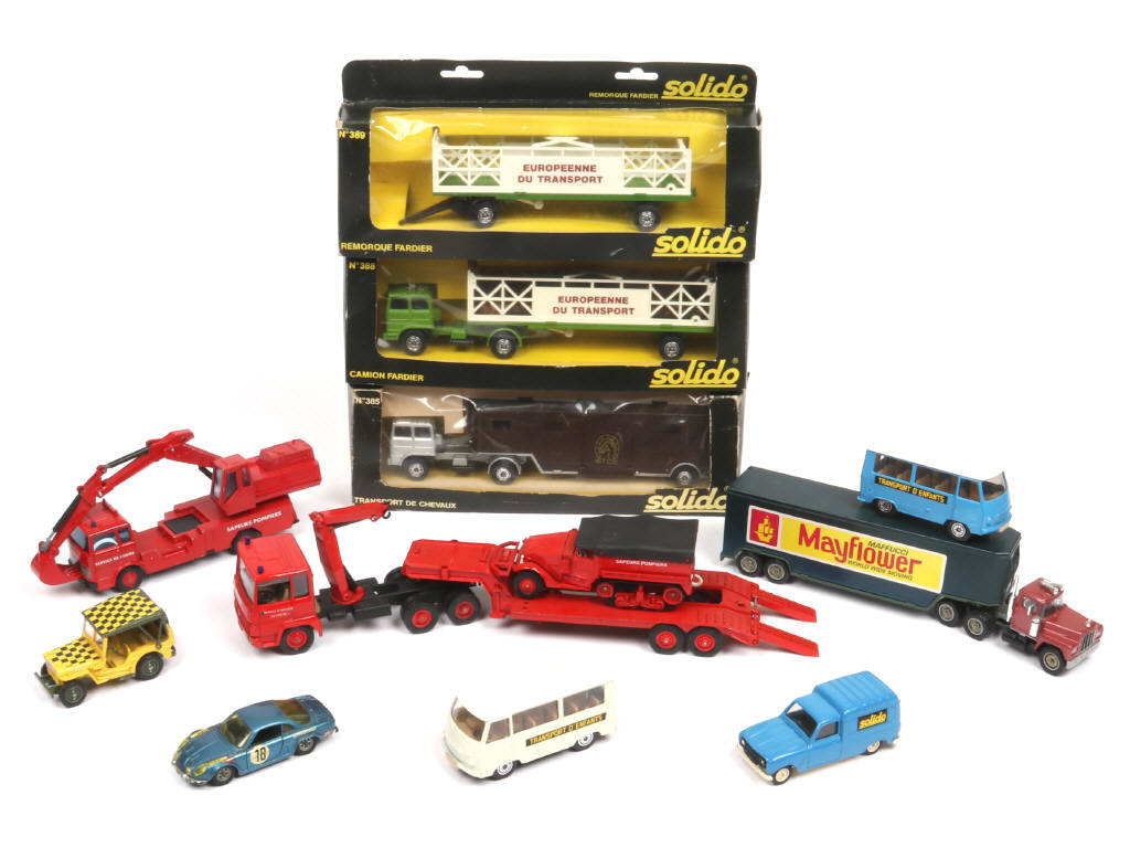 SOLIDO (FRANCE) Ensemble de 11 véhicules & une remorque