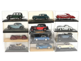 miniatures reproduisant notamment les modèles : TALBOT LAGO 2500 SPORT, MERCEDES-BENZ 300 SE & DELAHAYE 235 COACH - quelques boîtes non conformes (états 'b' & 'c')