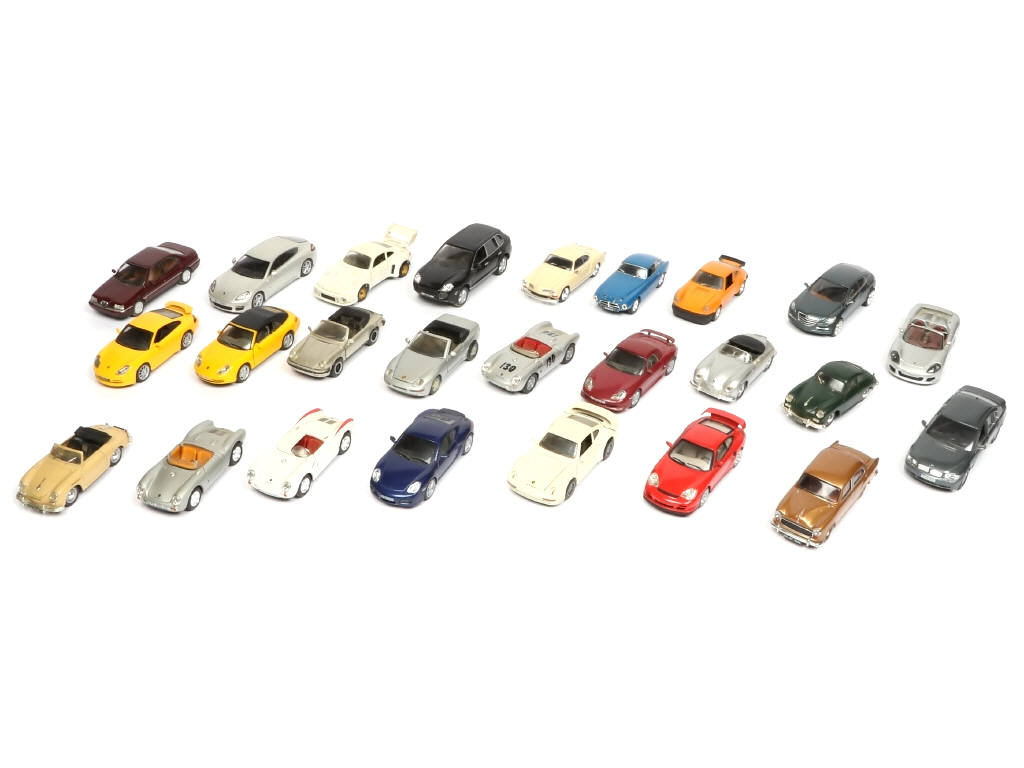 miniatures reproduisant notamment les modèles : PORSCHE 956, PORSCHE CAYENNE TURBO, PEGASO Z102 & ALFA ROMEO 164 - carrosseries encrassées sur certains modèles - possibilité de petits manques & parties cassées