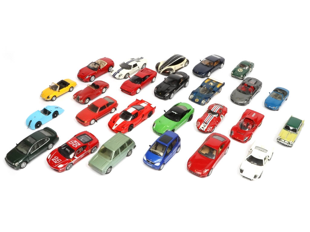 miniatures reproduisant notamment les modèles : LEXUS GS300, FERRARI 612 SCAGLIETTI, TOYATO CELICA & FERRARI 599 GTB - certaines carrosseries encrassées - possibilité de petits manques & parties cassées