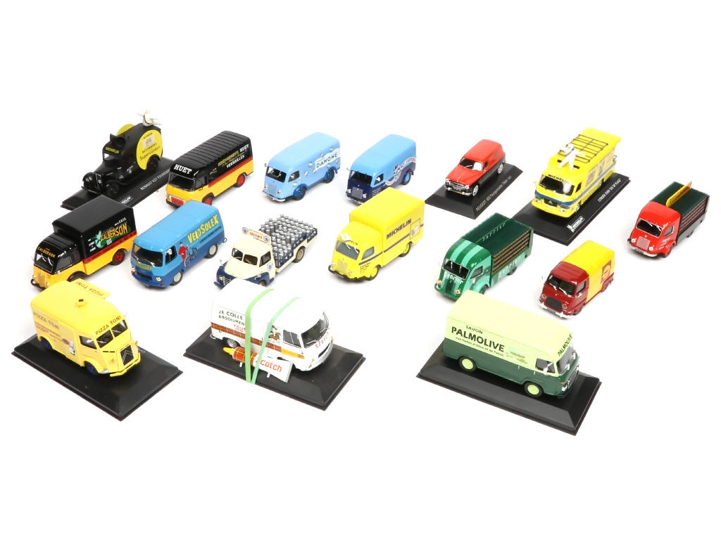 comprend notamment les modèles : PEUGEOT J7 "SCOTCH", CITROËN TYPE H "PIZZA3 & SAVIEM SG2 "PALMOLIVE" - possibilité de petits manques & parties cassées