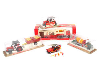 MAJORETTE (FRANCE) Ensemble de 5 véhicules, 2 figurines & une remorque