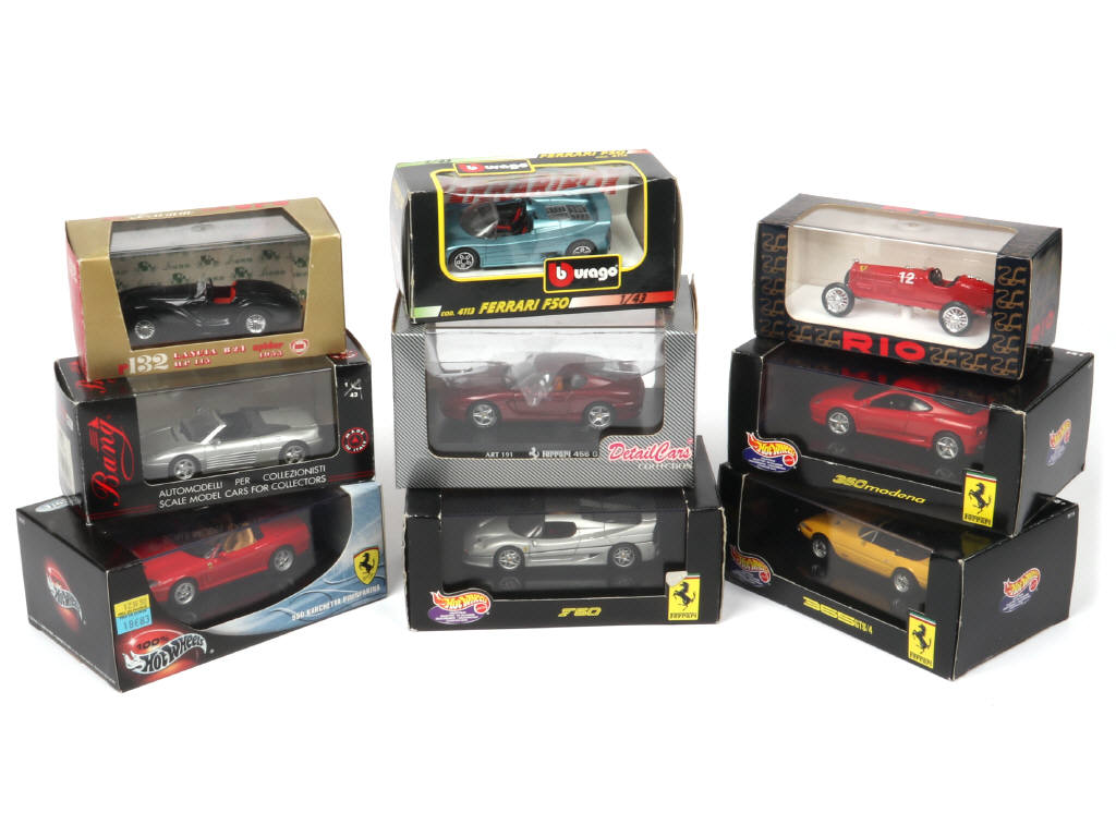 comprend notamment les modèles : FERRARI (principalement), ALFA ROMEO & LANCIA - on y retrouve les marques : BANG, BRUMM, DETAILCARS, HOTWHEELS, RIO & BBURAGO