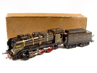 modèle électrique de 1935-1937 - version avec moteur bas voltage pour courant alternatif - avec paille d'origine de protection - manque ampoule de cabine, une roue & attelage arrière sur la locomotive - ETAT EXCEPTIONNEL !
