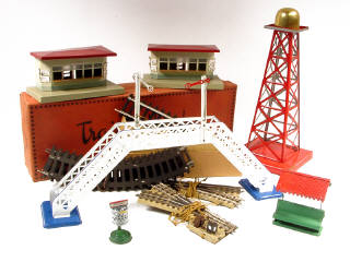 hauteur 37 cm - légères traces d'oxydation - on y joint une boîte de 8 rails droits & 6 rails courbes de marque FLEISCHMANN ainsi que 2 aiguillages en écartement 'HO' de marque MÄRKLIN