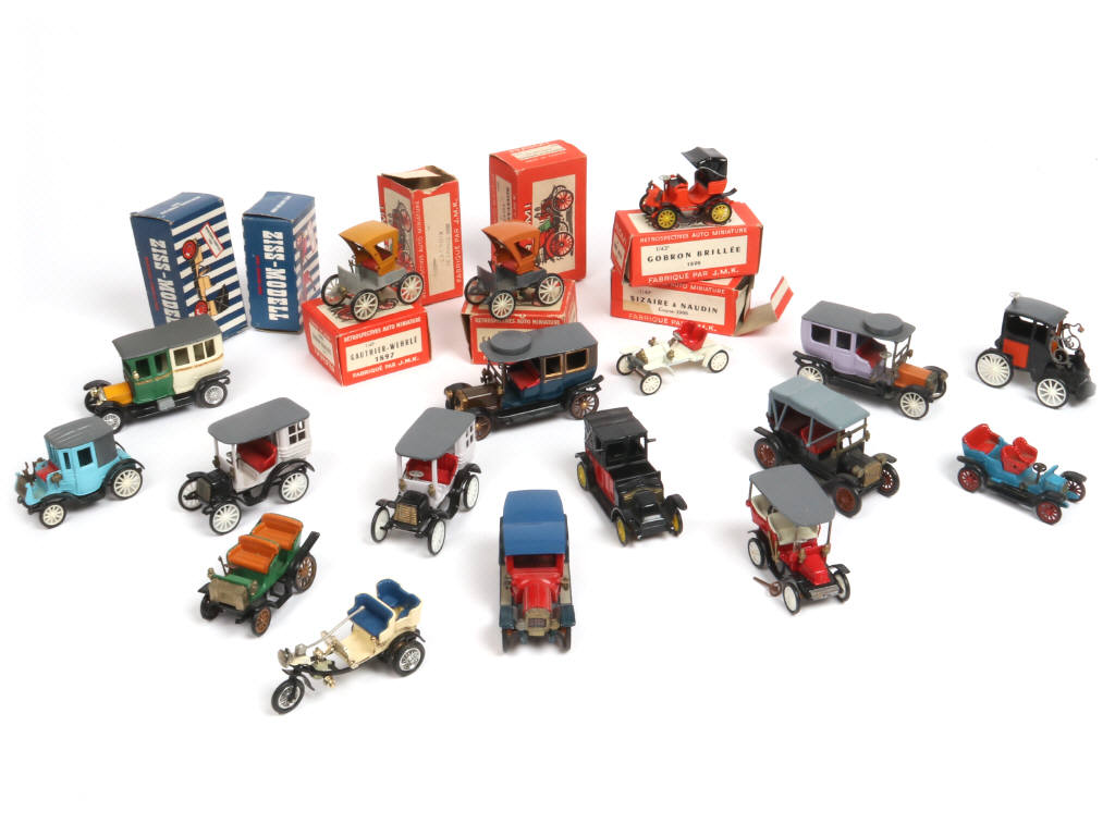 comprend notamment les modèles : LÉON BOLLET, PANHARD, BERLIET & FORD - on y retrouve les marques : ZISS MODELL & J.M.K - 8 modèles en boites (états 'b' à 'd') - avec manques & parties cassées