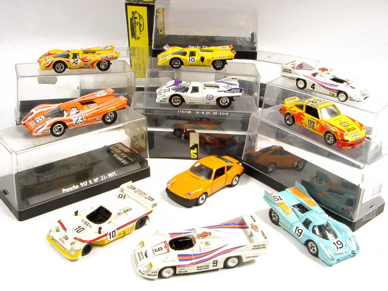 comprend : 9 PORSCHE (dont une de marque VEREM) & une GULF FORD - une boîte en état 'D'