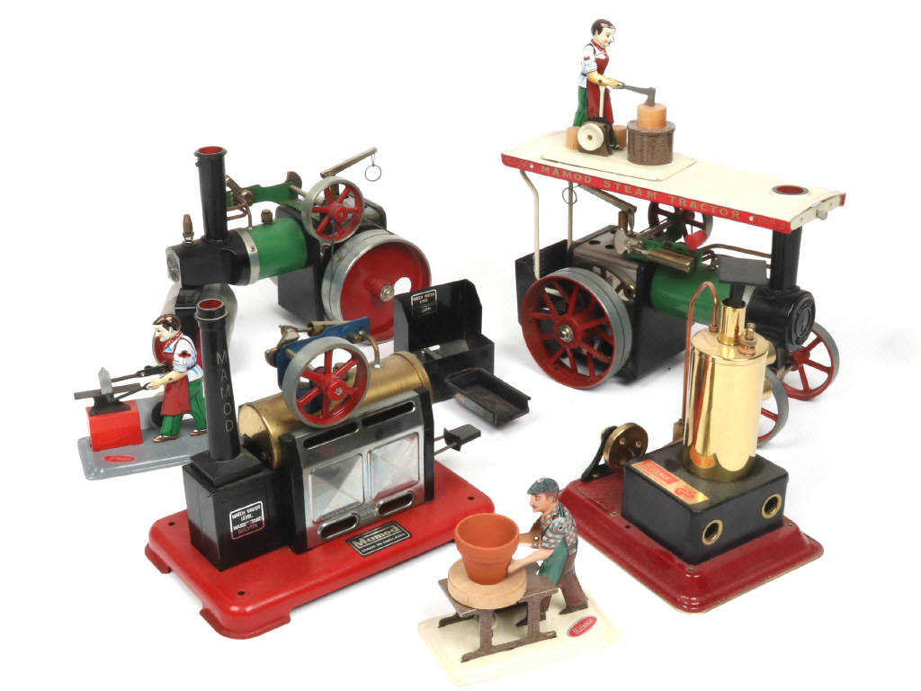 non teste - on y retrouve les marques : WILESCO & MAMOD - on y joint 3 personnages pour machines à vapeur de la marque WLESCO - quelques manques
