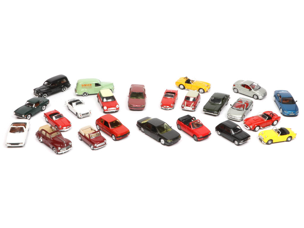 On y retrouve notamment les modèles : MINI, PEUGEOT 104 ZS, TRIUMPH SPITFIRE & AC COBRA 427 - possibilité de manques et parties cassées