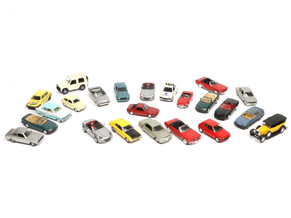 On y retrouve notamment les modèles : BMW 2002 TURBO, PEUGEOT 205, TRIUMPH SPITFIRE & FORD MUSTANG 64 - possibilité de manques et parties cassées