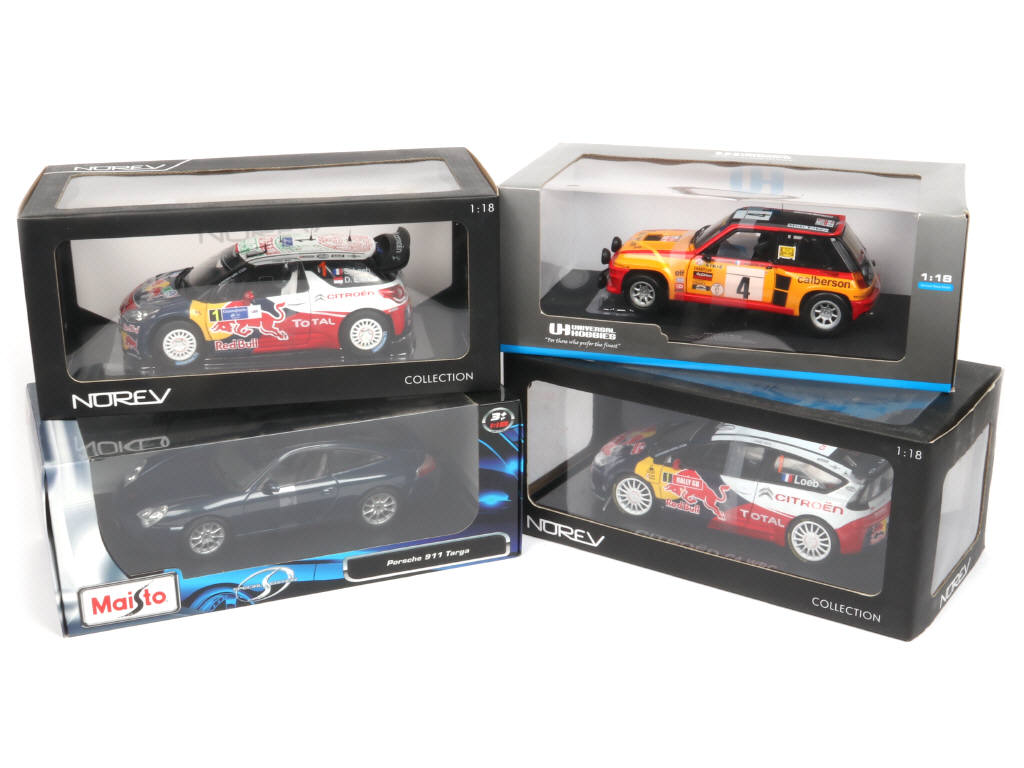 échelle 1/18ème - comprend les modèles : PORSCHE, CITROEN & RENAULT - on y retrouve les marques : NOREV, UNIVERSAL HOBBIES & MAISTO