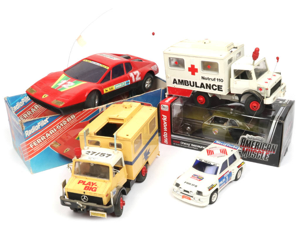 grandes échelles - on y retrouve notamment les marques : AUTO WORLD & PLAY BIG - avec manques & petites parties cassées - 2 exemplaires en boîte (état 'c')