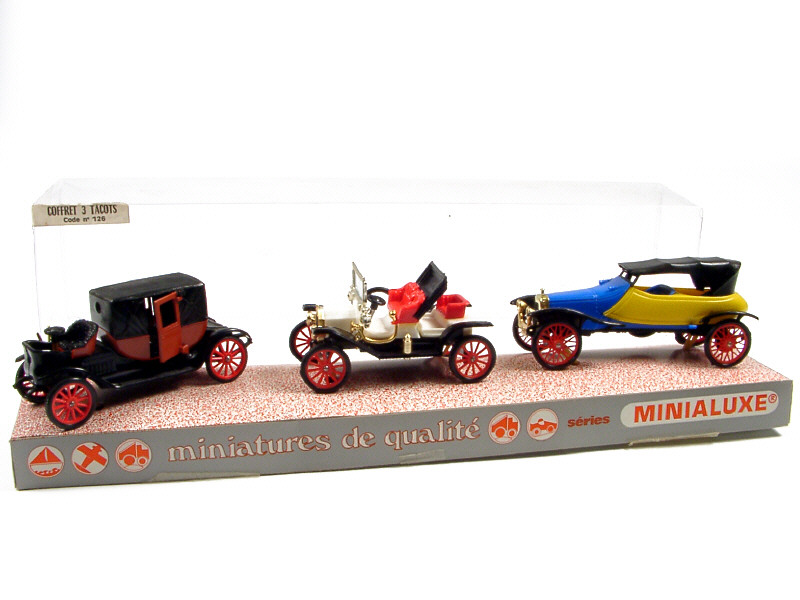 contient : une LANDAU PARK ROYAL de 1912, une FORD T de 1907 & une SKIFF de 1914 - quelques traces d'oxydation - contains the aforementioned vehicles - slight rust - SCARCE