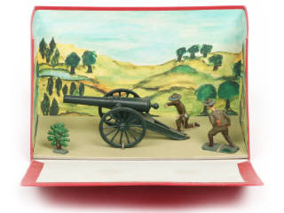dans l'esprit de la marque CBG - dimension du coffret : 20 x 9 cm - contient : un canon de campagne de 155 mm, 2 servants américains & un buisson