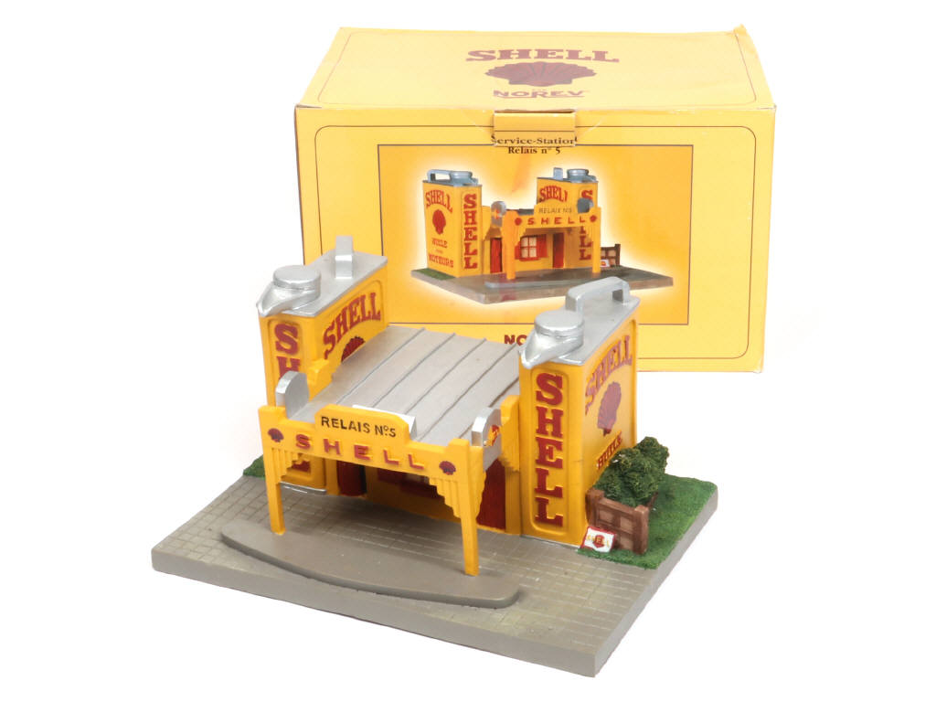 NOREV (FRANCE) 132000 Relais n°5 de SHELL en forme de bidons d'huile jaune & 2 tons de gris