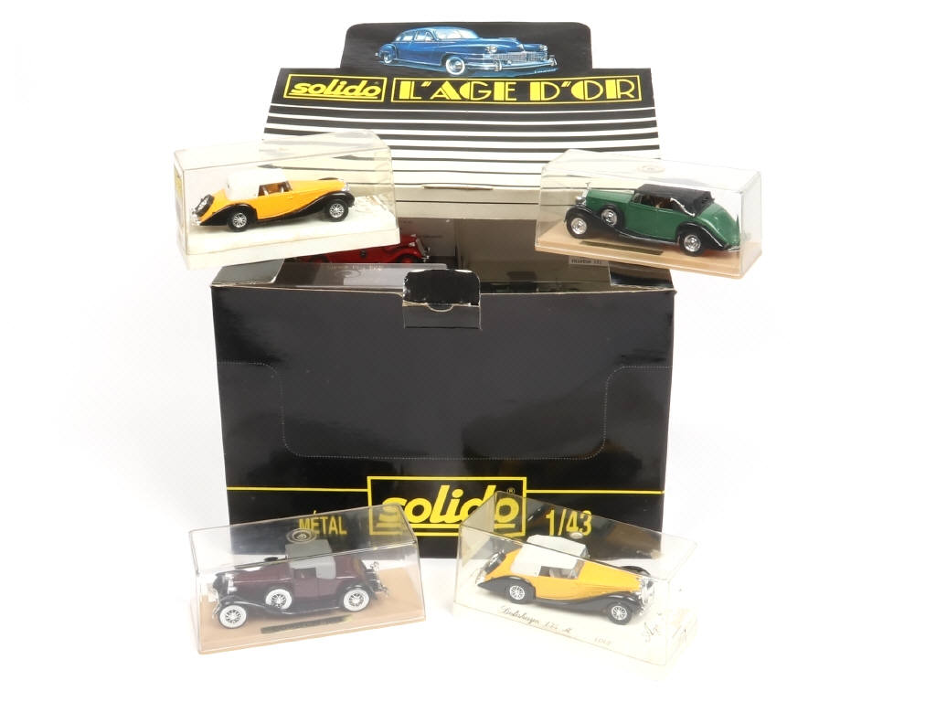 comprend notamment les modèles : DUESENBERG, CORD, MERCEDES, ROLLS ROYCE & CITROEN - certains modèles en série limitée - on y joint une boite-présentoir de la série 'L'AGE D'OR