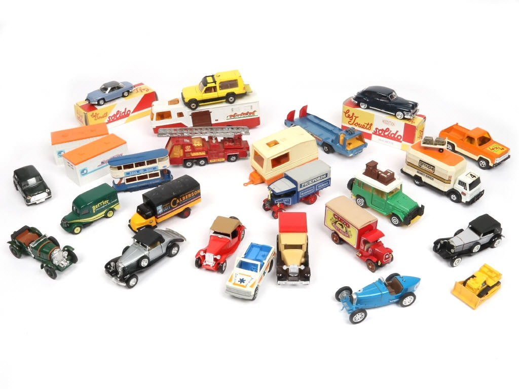 comprend notamment les modèles : MERCEDES, TOYOTA, AUSTIN, PANHARD & RENAULT - on y retrouve les marques : MATCHBOX, SOLIDO & CORGI - avec manques & parties cassées