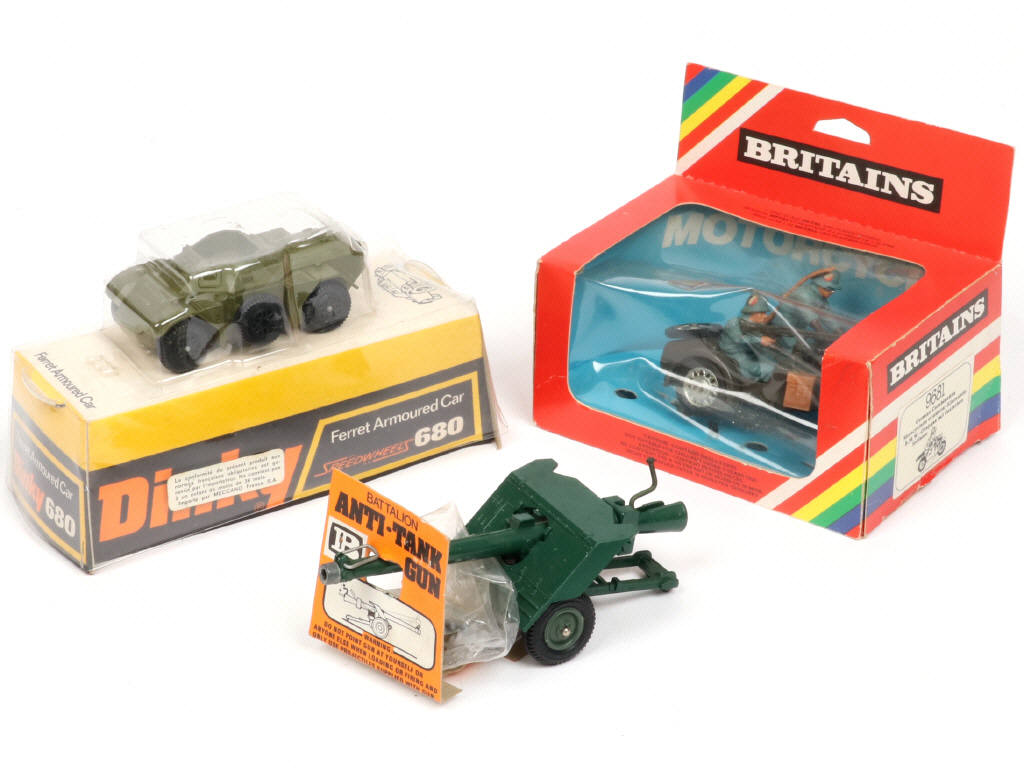 BRITAINS (GB) Ensemble d'une moto avec side car & un canon anti-char