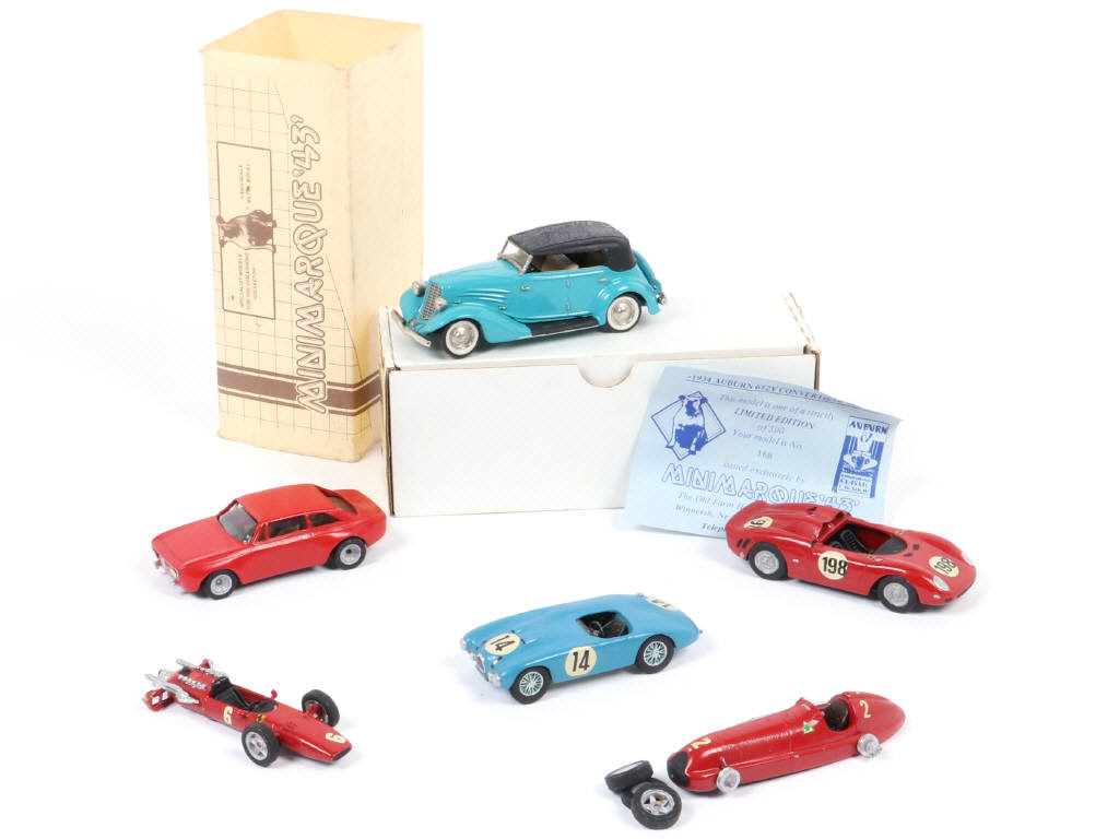 comprend les modèles : AUBURN, ALFA ROMEO, FERRARI & GORDINI - avec manques & parties cassées - on y retrouve les marques : MINI MARQUES (limitée à 500 exemplaires), F.D.S. & S.B MODELS