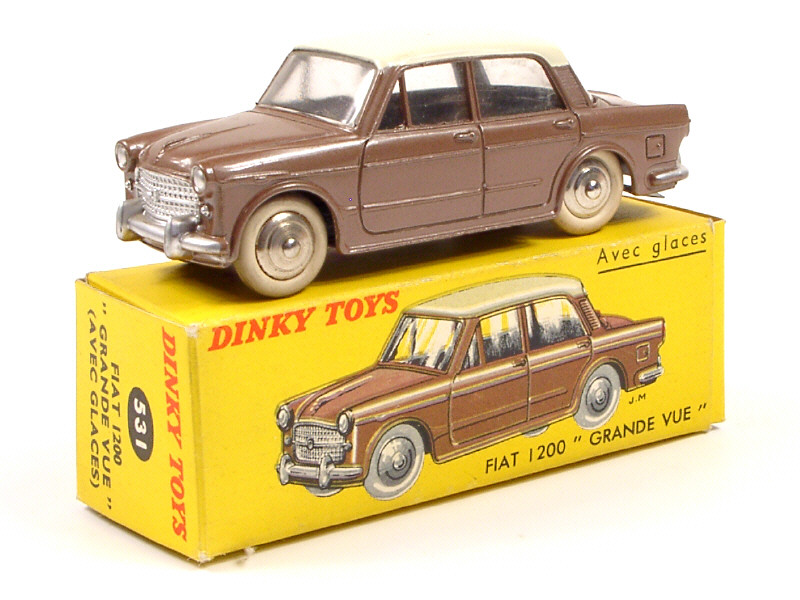 DINKY TOYS (FRANCE) 531 FIAT 1200 GRANDE VUE (version avec jantes convexes) havane métal, toit crème
