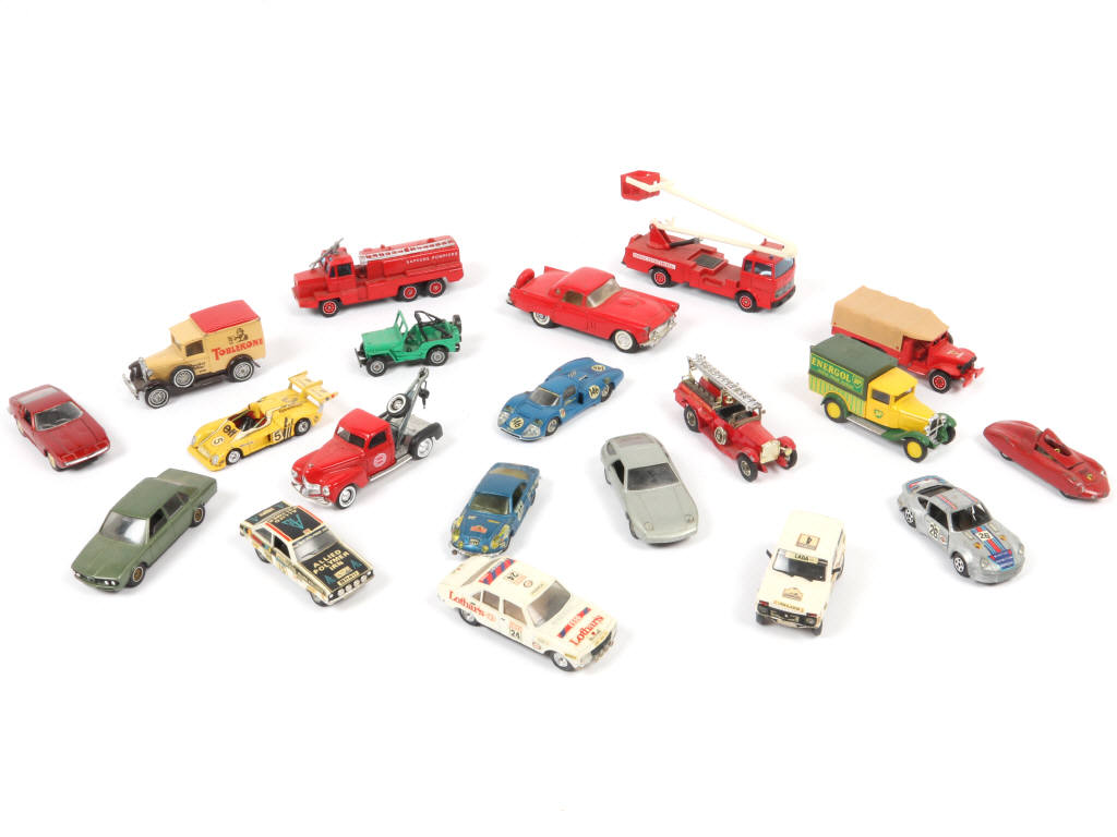 comprend notamment les modèles : PORSCHE, BMW, JEEP, FIAT & MERCEDES - on y retrouve notamment les marques : SOLIDO, MAJORETTE & NOREV - avec manques, parties cassées & repeintes