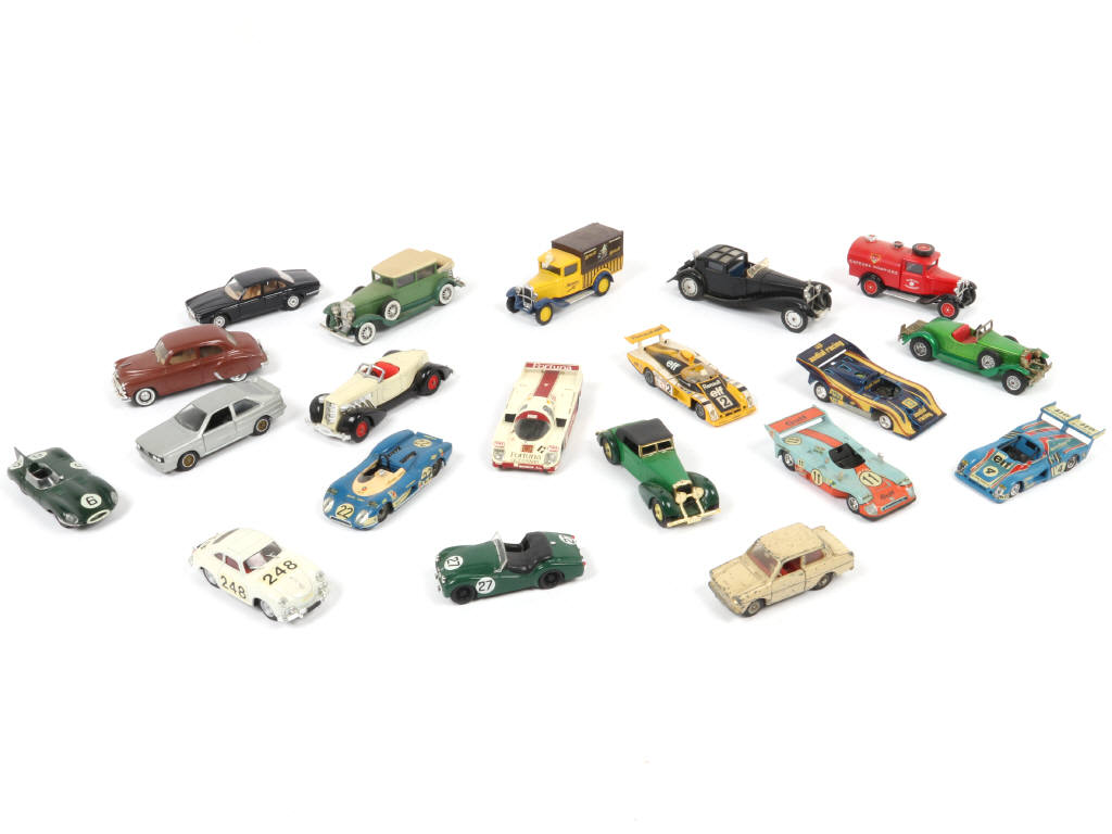 comprend notamment les modèles : DAF, TRIUMPH, PORSCHE, AUDI & BUGATTI - on y retrouve notamment les marques : SOLIDO, BRUMM, VITESSE, MATCHBOX & DINKY TOYS - avec manques & parties cassées