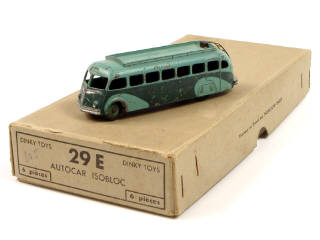 DINKY TOYS (FRANCE) 29E Autocar ISOBLOC (version avec galerie lisse & ailes au pochoir) 2 tons de vert