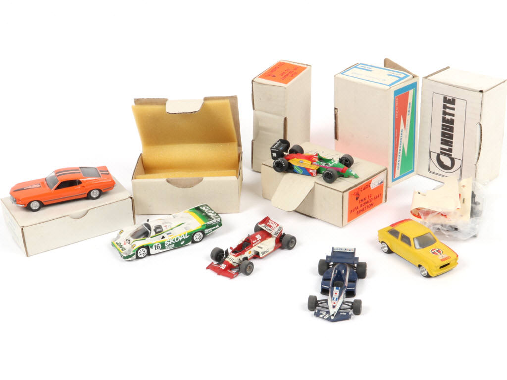 comprend notamment les modèles : TALBOT, LIGIER & PORSCHE - on y retrouve les marques : VITESSE (sur base), SILHOUETTE, TAMEO & MERI KITS - avec manques, parties cassées ou à recoller - certaines boites non conformes