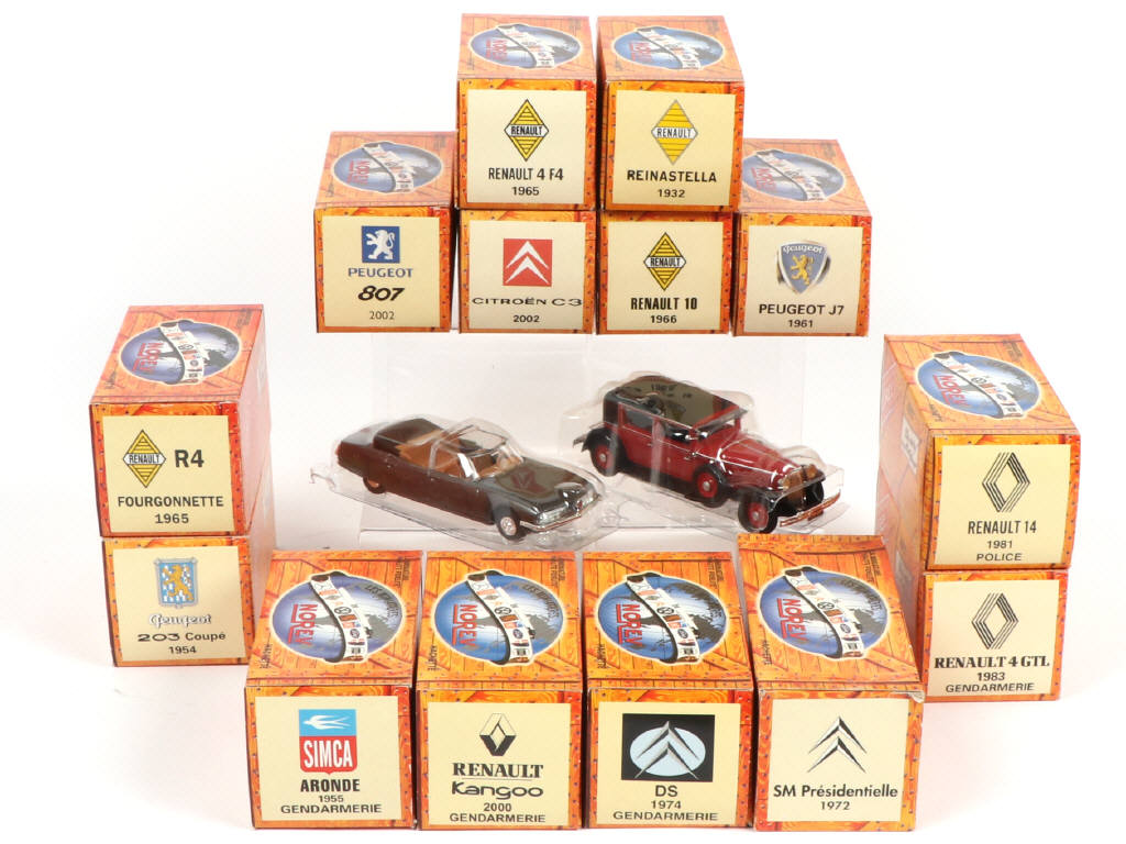 comprend notamment les modèles : CITROËN SM PRESIDENTIELLE 1972, RENAULT 4 GTL 1983 GENDARMERIE & PEUGEOT J7 1961 - possibilité de manques ou parties cassées