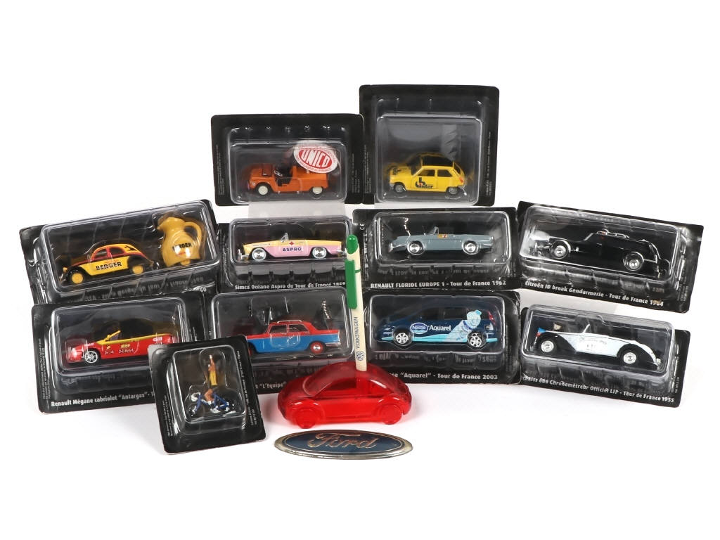 comprend notamment les modèles : RENAULT MEGANE CABRIOLET, SIMCA OCEANE & CITROËN ID BREAK - on y joint un lot d'objets - possibilité de manques ou parties cassées