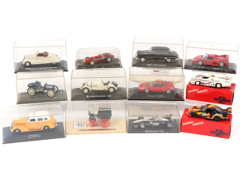 On y retrouve notamment les marques : SOLIDO & HERPA - entre autres les modèles : FERRARI F50 & CHRYSLER AIRFLOW - possibilité de manques ou parties cassées